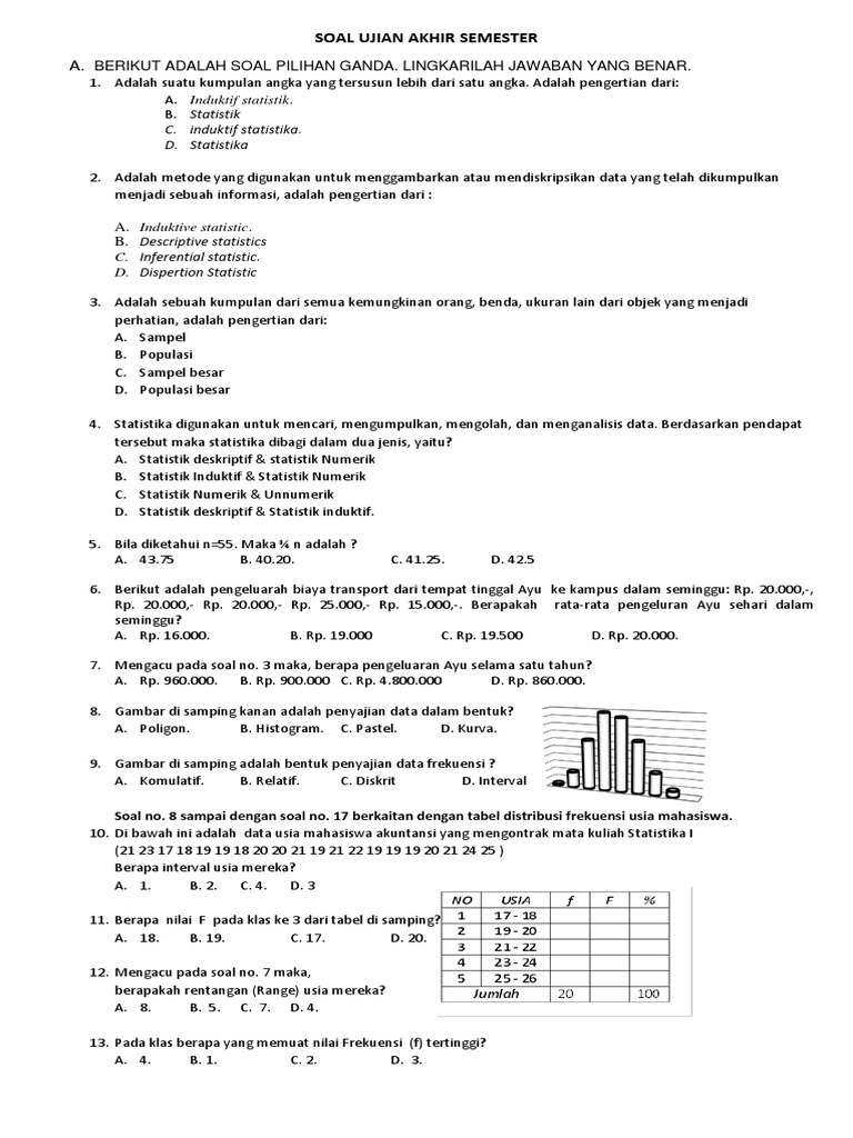 Contoh soal statistik deskriptif dan jawabannya. Maybe you would like to learn more about one of these? We did not find results for: Check spelling or type a new query.